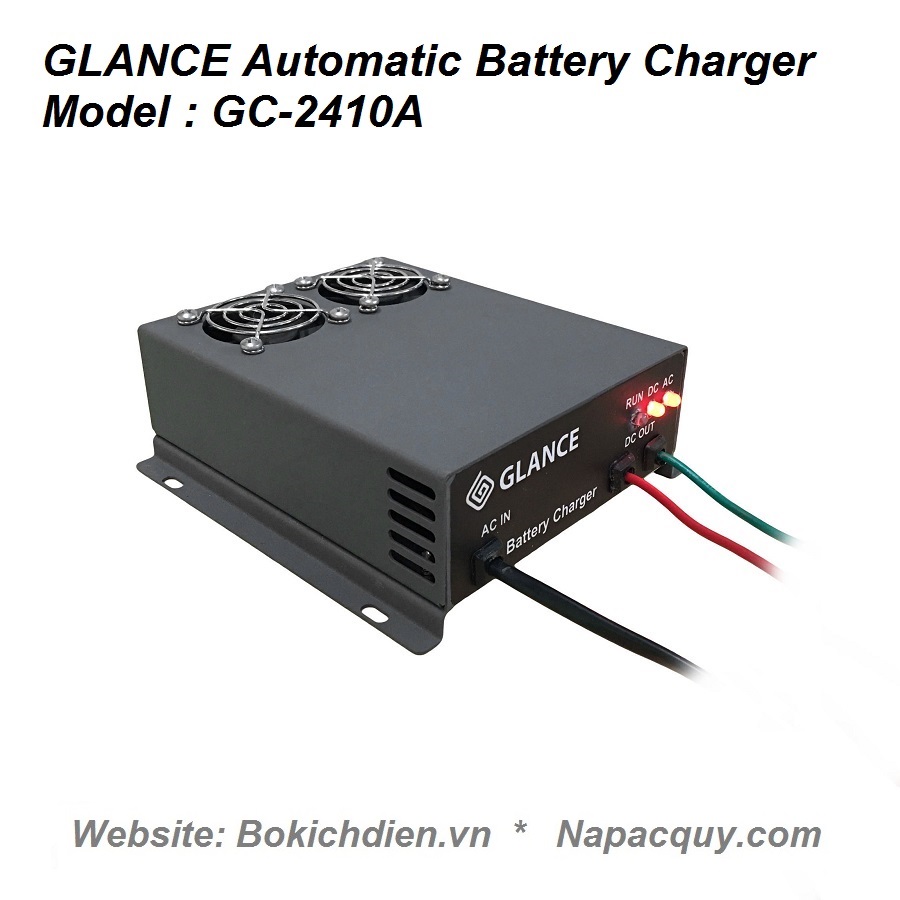- Máy sạc ắc quy tự động 3 chế độ GLANCE Là thiết bị sử dụng để nạp điện cho bình ắc quy khô hoặc ắc quy nước có dung lượng từ 10Ah đến 100Ah. Với dòng sạc tương ứng với ắc quy. Sử dụng nguồn biến áp cao tần cho hiệu xuất cao lên đến 93%. Ổn định dòng sạc trong suốt quá trình sạc ắc quy.