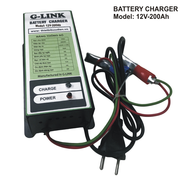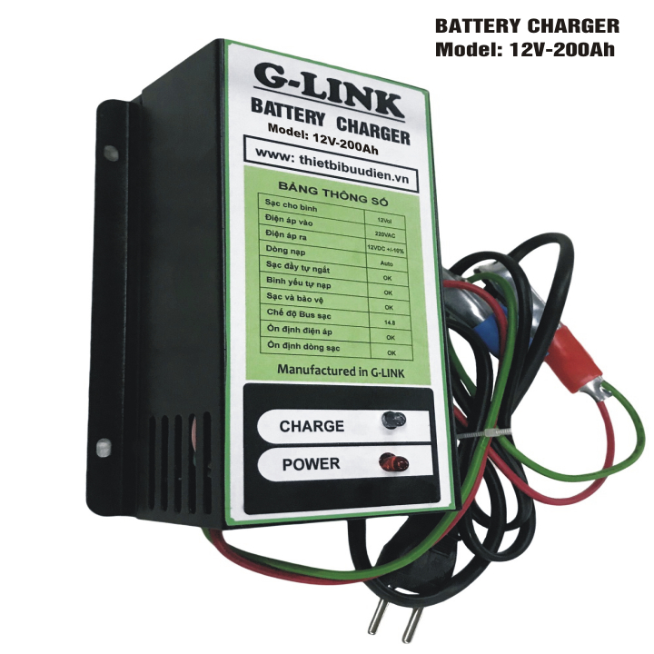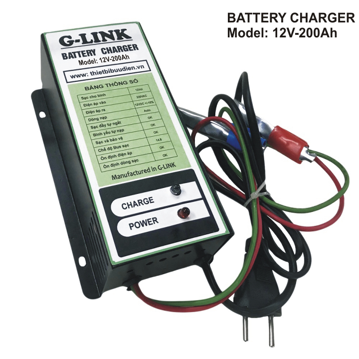 Máy Sạc ắc quy tự động G-LINK  G12V-200Ah tự động ngắt khi bình ắc quy đã đầy điện, bảo vệ, kéo dài tuổi thọ cho bình ắc quy, phòng chống chập, cháy, nổ. Giảm thiểu nhân công vận hành trông coi trong quá trình sạc ắc quy